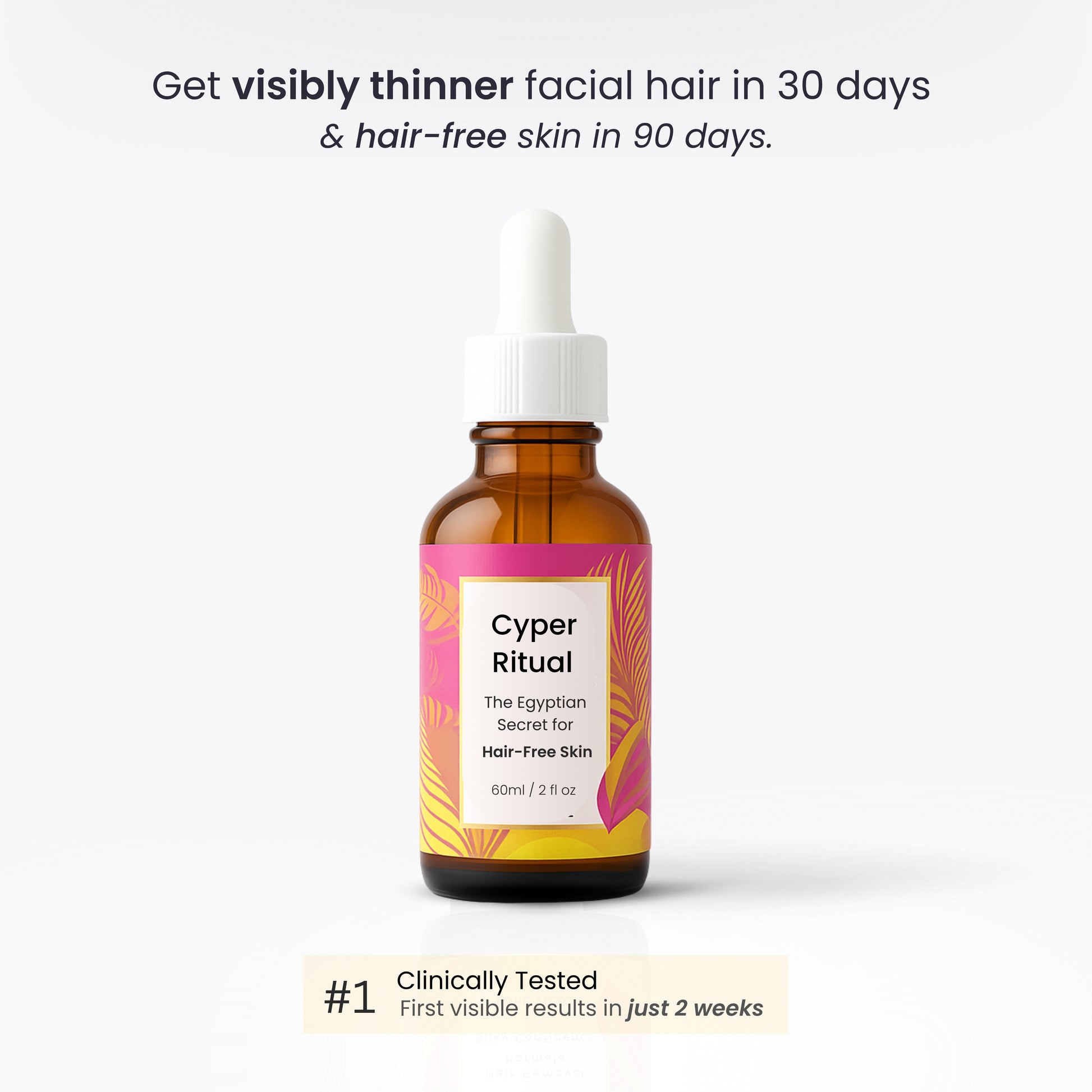 Our CyperRitual™ Oil works by addressing the root cause of unwanted hair growth through localized hormone pathway modulation.