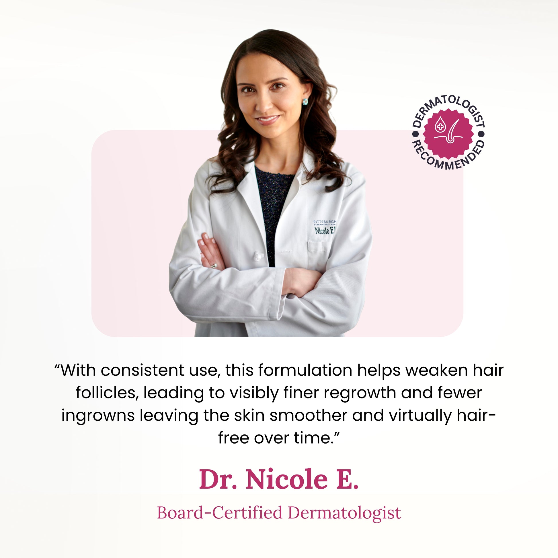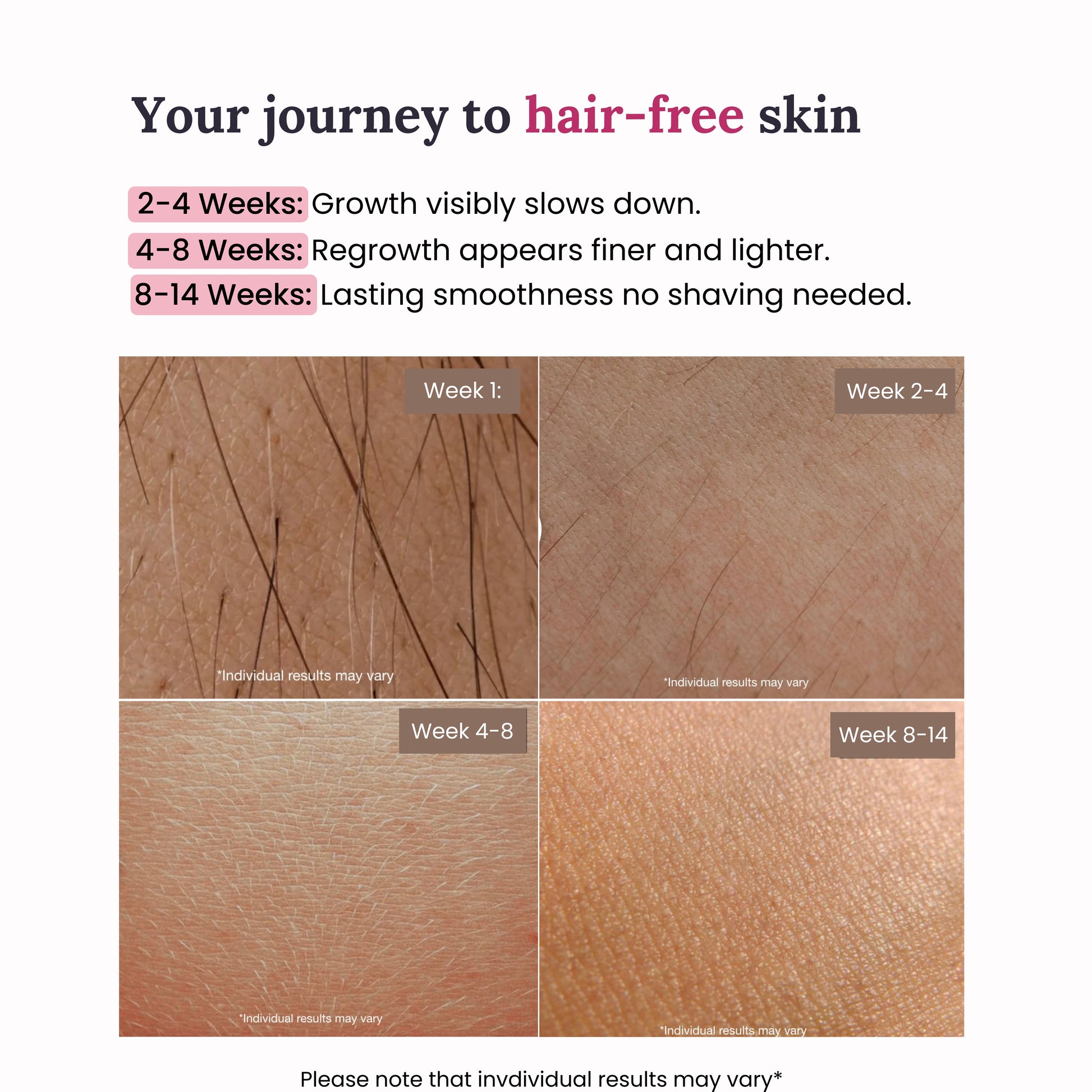 Most users notice slower and finer regrowth within 1-2 weeks of consistent use. With consistent long-term use, many customers report dramatic reduction in hair growth that lasts even with less frequent applications. Results improve over time with regular use.