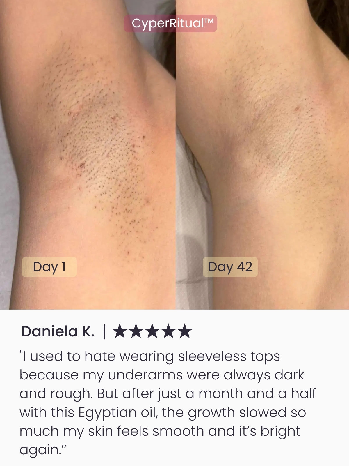 I’ve tried waxing, sugaring, everything. This Egyptian oil feels totally different!! No irritation, no bumps, just softer skin and slower growth. I catch myself touching my legs because they stay so smooth now.